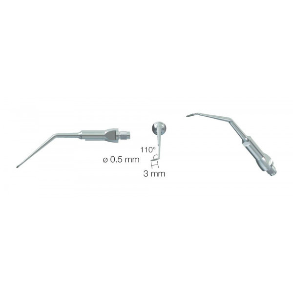 Для использования в каналах моляров левой верхней челюсти и нижней правой диаметр 0.5 мм, угол 110°