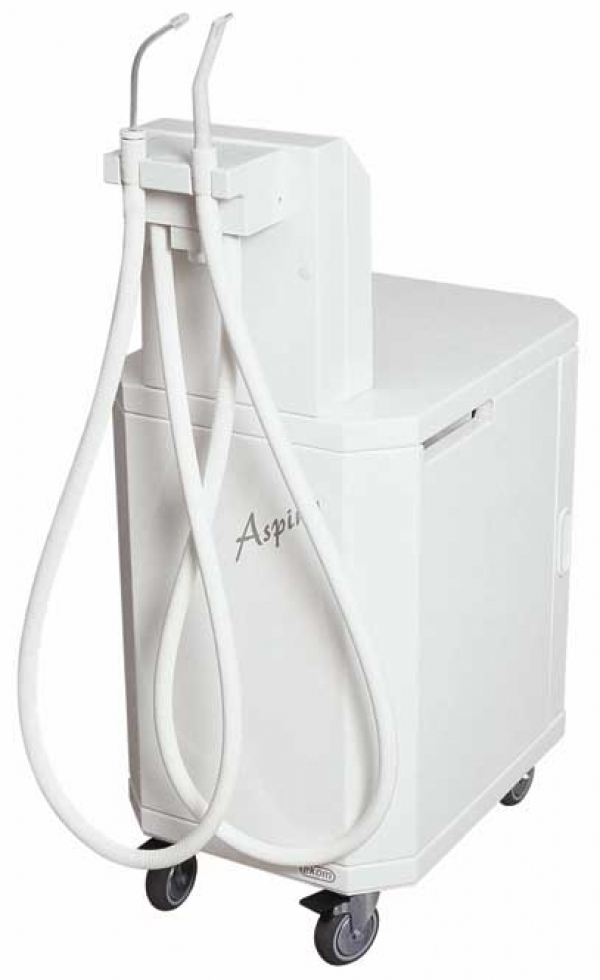 • Мобильная аспирационная система ASPINA повышает качество и удобство работы врача. ASPINA предназначена для тех стоматологических установок, которые не оснащены собственной аспирационной системой с сепаратором. В корпусе ASPINA устроен вместительный контейнер. Благодаря своей мобильности ее можно легко передвигать между 2 рабочими местами, а также это дополнительная возможность для помещений, в которых нет возможности подключения отсасывающих систем к канализации.