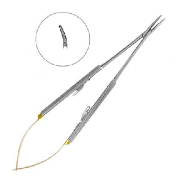 Иглодержатель Кастровьехо хирургический изогнутый Castroviejo-Gomel TC, 180 мм