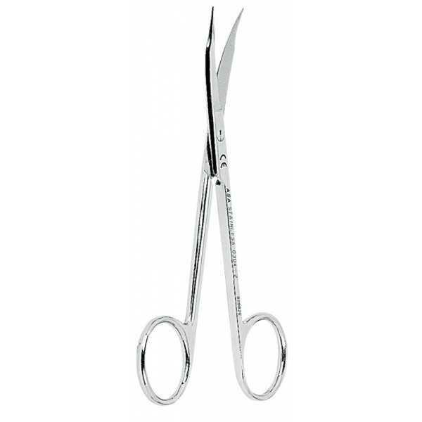 Ножницы для десны изогнутые, зубчики на одном лезвии, узкие лезвия 13 см.