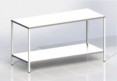 Каркас изготовлен из стального профиля квадратного сечения, полимерно-порошковое покрытие. Столешница и полка выполнены из металла или нержавеющей стали, установлен на регулируемые опоры.
